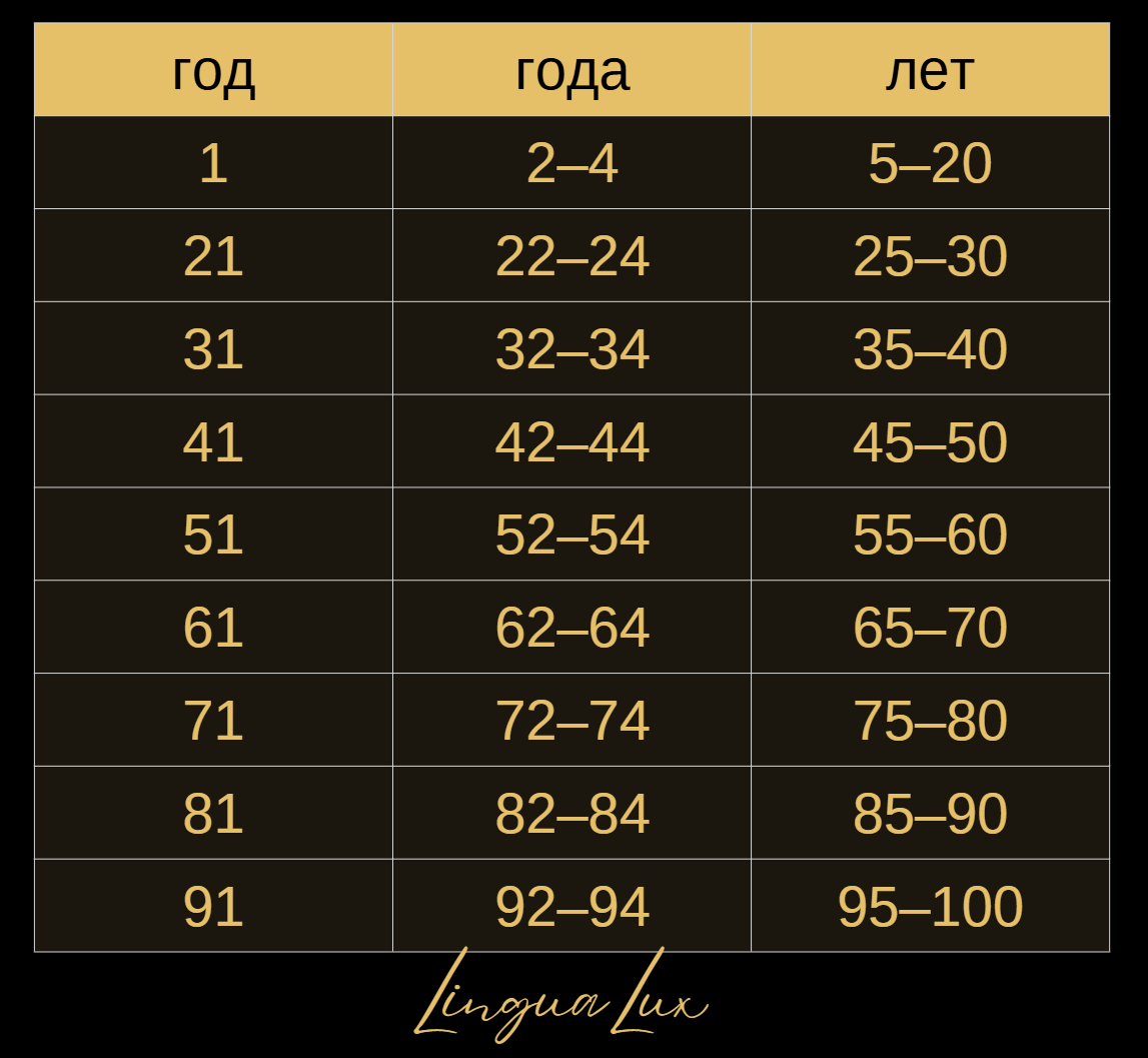 ГОД / ГОДА / ЛЕТ son formas de contar “años” en ruso, y cambian según el número.